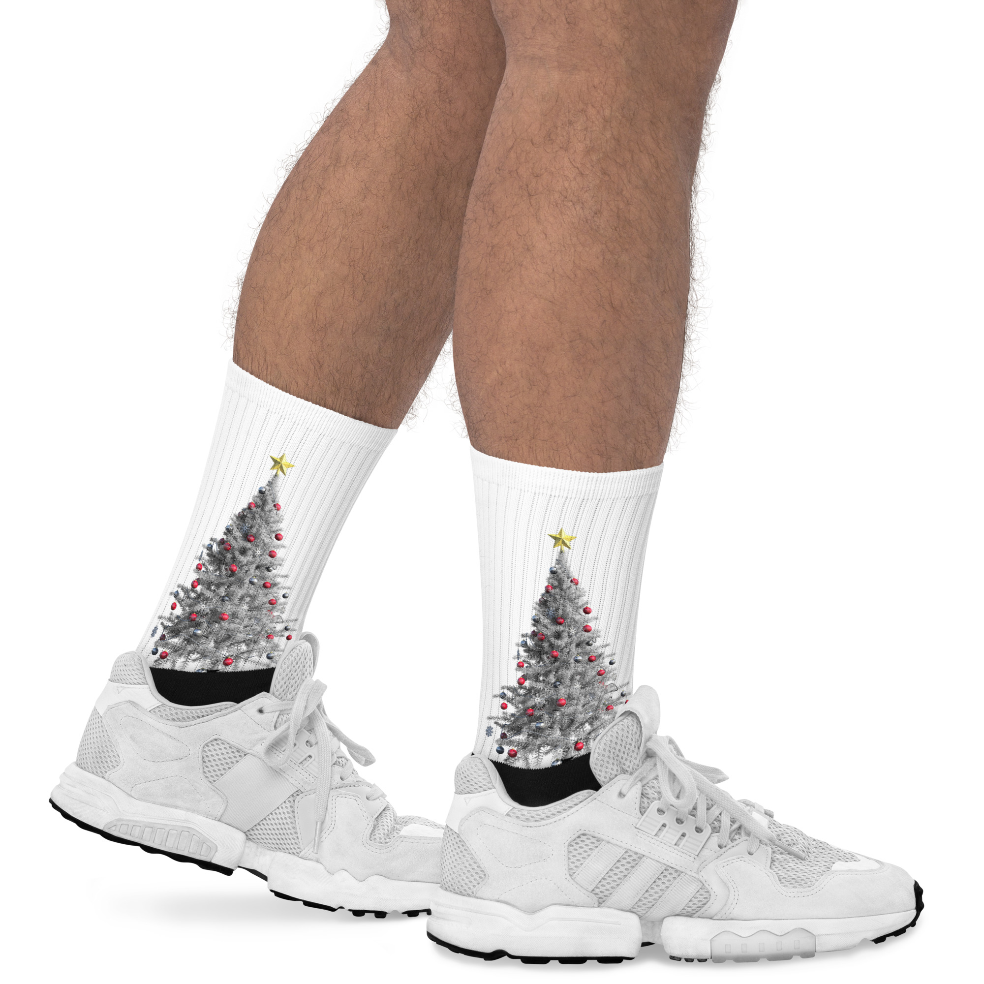 These socks are extra comfortable thanks to their cushioned bottom. The foot is black with artwork printed along the leg with crisp, bold colors that won’t fade.